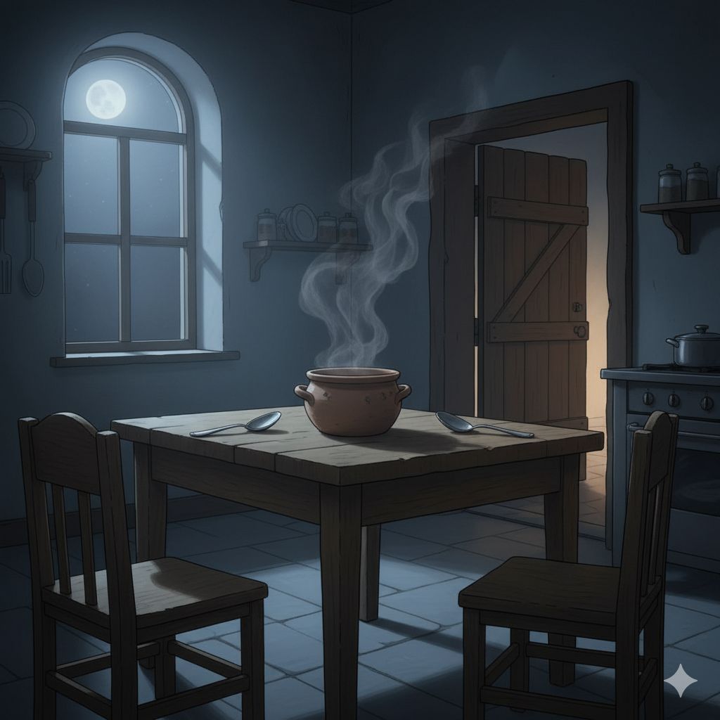 La sopera, quieta en la mesa, parecía escuchar.
