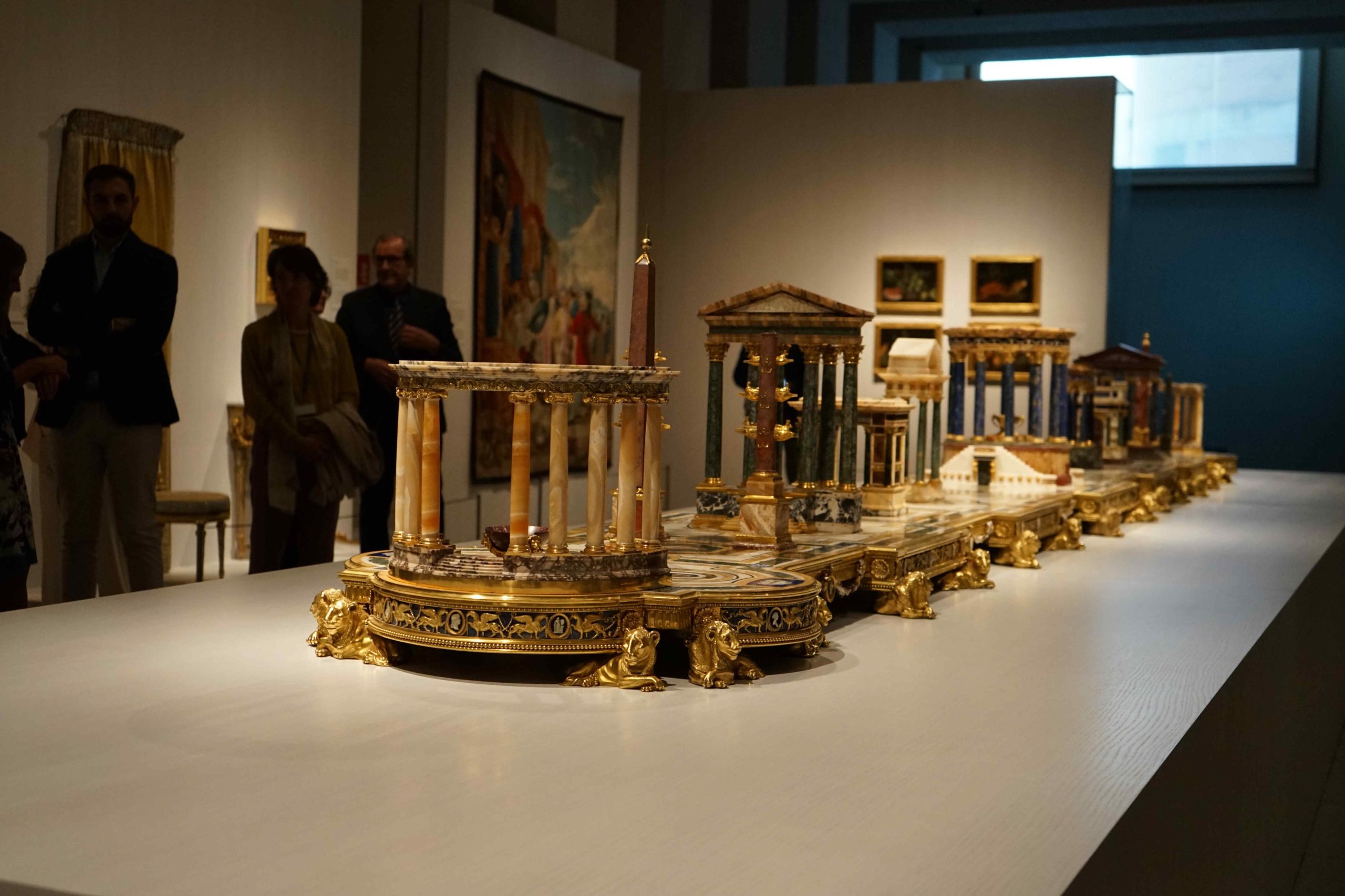 El acuerdo firmado con el MAN ha permitido incorporar en la Galería diecisiete nuevos elementos escultóricos con arcos de triunfo, obeliscos o pórticos. Destacan, entre ellos, las reproducciones a escala reducida de los arcos de triunfo de Trajano en Ancona y Septimio Severo o de los Argentarios (Roma), columnas triunfales, las escalinatas del Templo de Flora, así como obeliscos o los pórticos de los templos de Minerva y Mercurio. Aparte de su diseño, asombra la combinación de materiales de extraordinaria calidad: mármoles antiguos y piedras duras de diferentes vetas y colores, bronce dorado, plata sobredorada, marfil, ámbar o esmalte.