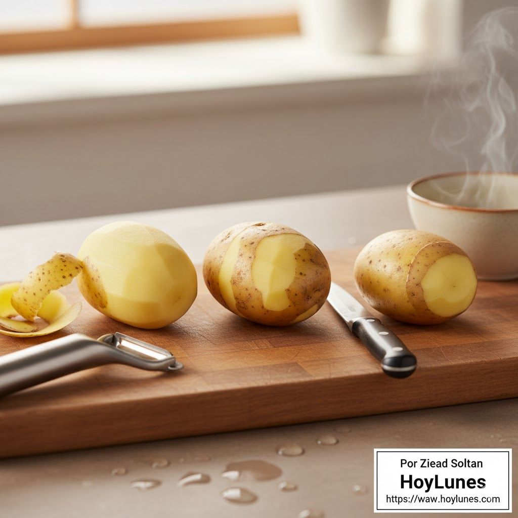 Para purés, ensaladillas o patatas cocidas para el táper, lo mejor es cocinarlas con piel y retirarla después. Se desliza sola, conserva nutrientes y evita que la patata absorba demasiada agua. Una técnica perfecta para quienes llevan comida al trabajo.