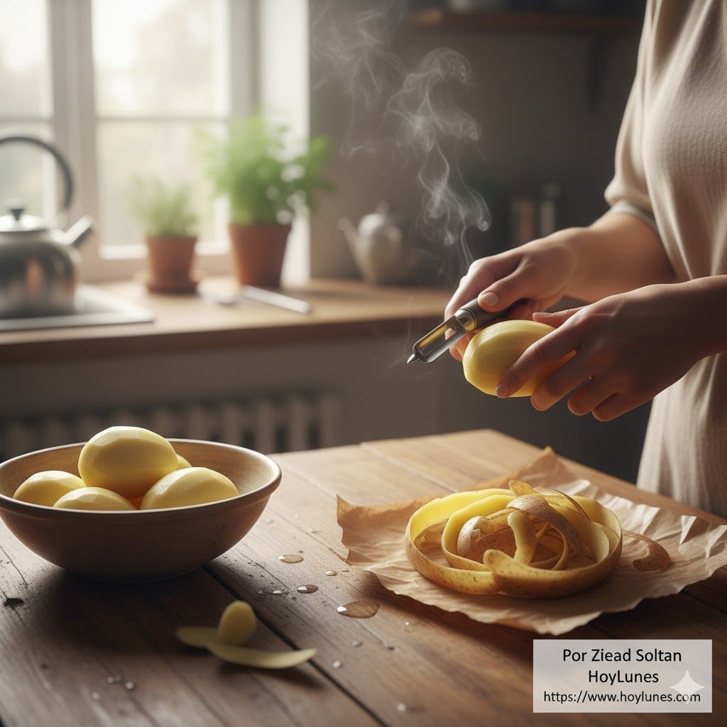 Quizá lo más sorprendente es que la manera en que pelamos patatas influye directamente en su sabor final. Las patatas peladas de forma fina conservan mejor su humedad natural y requieren menos sal; las peladas gruesas generan una textura más esponjosa al cocerlas; y cuando se pelan después de cocinarlas, liberan un aroma diferente gracias a la preservación del almidón interno. Es decir: la técnica del pelado no solo ahorra tiempo… también modifica el resultado en el plato.