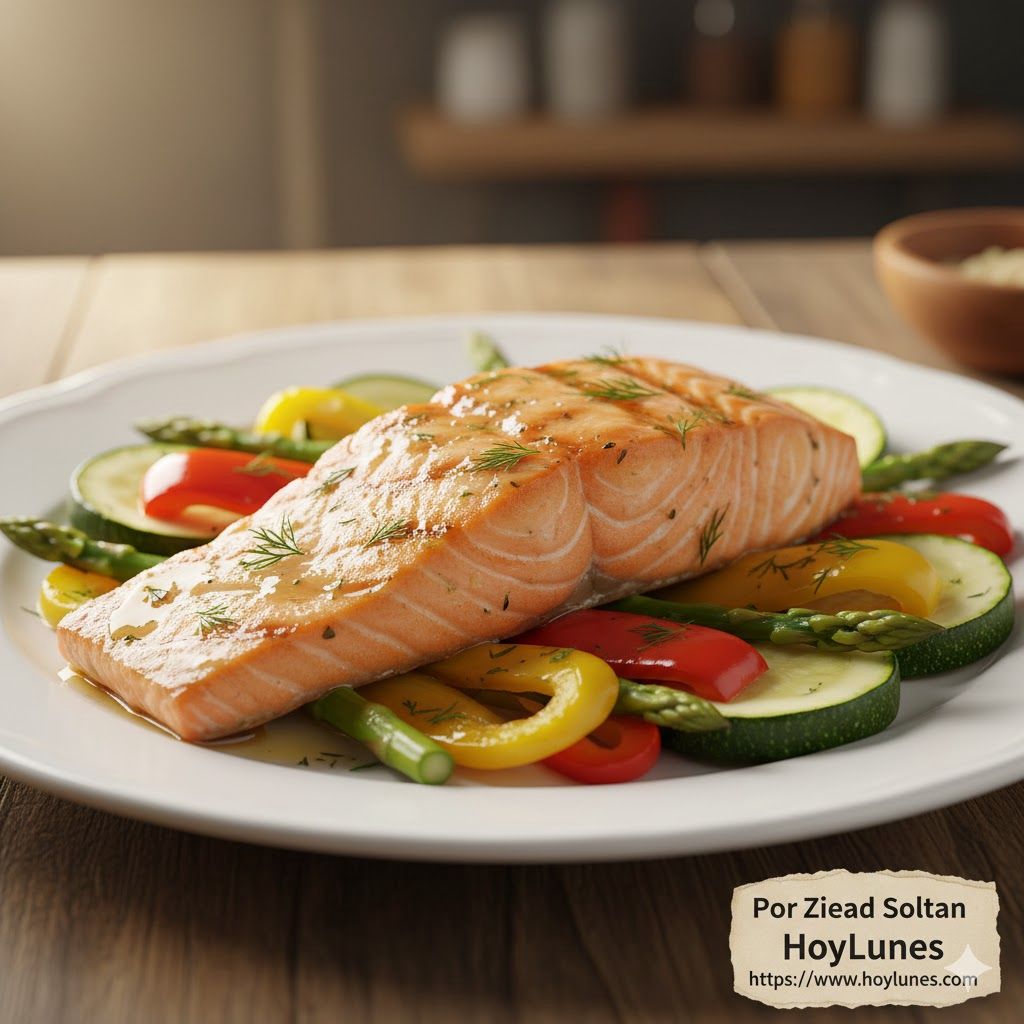 Otras noches, el plato se ilumina con el brillo tenue del salmón a la plancha, escoltado por verduras al vapor o ligeramente asadas. Su combinación de grasas saludables y proteínas magras convierte la cena en un acto de cuidado, sin necesidad de instrucciones explícitas. Es una propuesta que funciona sobre todo cuando el día ha sido largo: sacia, protege y no exige más digestión de la necesaria.