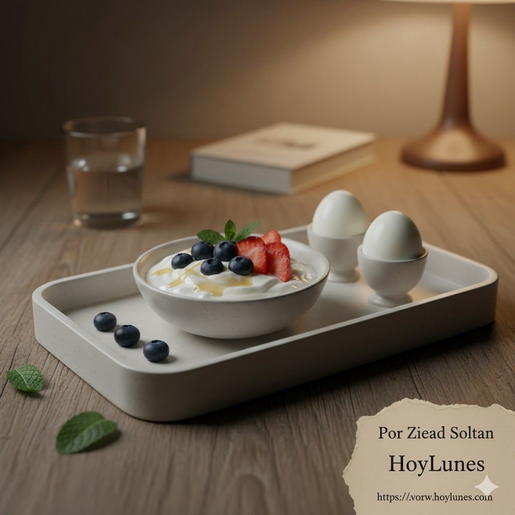 Hay noches en que el cuerpo pide simplemente un acompañamiento honesto: dos huevos cocidos, una tortilla suave con espinacas o un bol de yogur griego con fruta, ideal cuando un impulso dulce aparece antes de apagar la luz. No son menús, son gestos: maneras de recordarnos que comer puede ser un acto de serenidad.