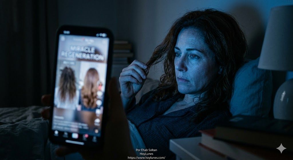 HoyLunes – تتوهج شاشة الهاتف في عتمة الغرفة. تُمرر سارة إبهامها، وفي أقل من دقيقة، تُشاهد المعجزة نفسها تتكرر ثلاث مرات: امرأة تدخل صالونًا بشعر باهت، مُستسلمة للجاذبية والشيب، وتخرج وقد تحولت إلى نسخة من نفسها تبدو وكأنها عادت عقدين من الزمن إلى الوراء. يحصد الفيديو ملايين الإعجابات وآلاف التعليقات التي تسأل بيأس: “أين؟”، “كم التكلفة؟”، “لدي موعد بعد ستة أشهر، هل يستحق الانتظار؟”.